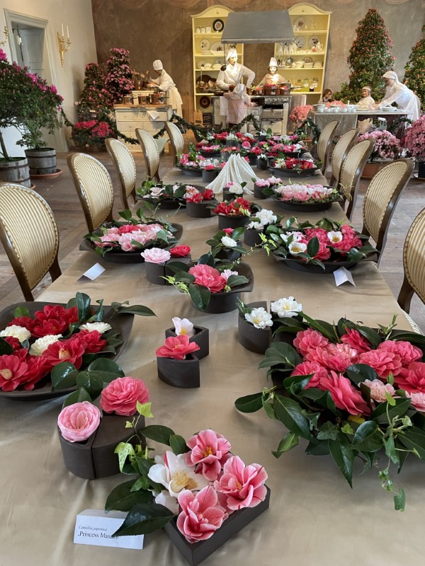 Bei den Zierpflanzen handelt es sich in erster Linie um uralte Sorten aus Ostasien. Dorther stammen die Kamelien, Azaleen, Rhododendren und Hortensien, die in Zuschendorf eine genetische Schutzsammlung darstellen. Auf Grund des recht kühlen Frühjahrs kamen wir in den Genuss sowohl die aktuelle Azaleenschau in den Schlossräumen zu bewundern als auch noch viele blühende Kamelien im Schloss und in den Gewächshäusern zu sehen. Die Parkanlage und die Gewächshäuser wirkten liebevoll gepflegt, Efeu und Bonsaibäumchen machten den Blühpflanzen Konkurrenz. Es war alles traumhaft arrangiert und man hätte einfach noch bleiben und staunen können.